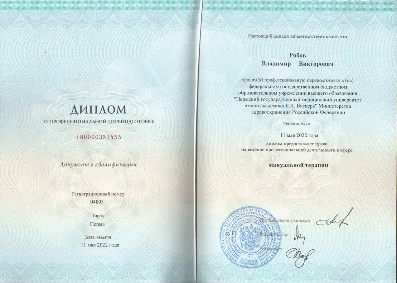 врач травматолог-ортопед высшей категории, мануальный терапевт, прикладной кинезиолог, член Союза прикладных кинезиологов России. Закончил «с отличием» лечебный факультет Пермской государственной медицинской академии в 2001 году. С 2001 по 2021 год работал в МСЧ № 9, Краевой детской клинической больнице, являлся врачом детского ортопедо-травматологического отделения.