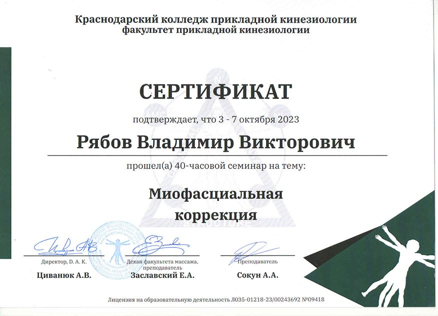 2. Миофасциальная коррекция и метод сухой иглы. ККПК. г. Краснодар. Циванюк А.В. D.A.K.